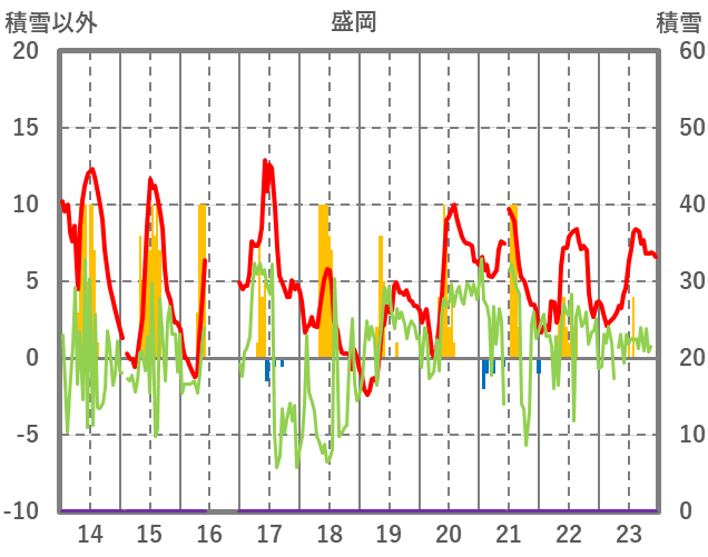 | 日 | 時 | 気温 | 降水 | 風向/風速 | 日照 | 積雪 | 降雪 |