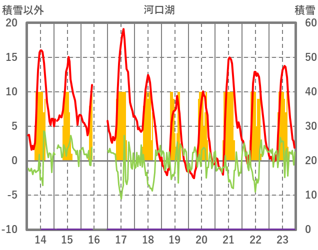 | 日 | 時 | 気温 | 降水 | 風向/風速 | 日照 | 積雪 | 降雪 |