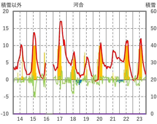 | 日 | 時 | 気温 | 降水 | 風向/風速 | 日照 | 積雪 | 降雪 |