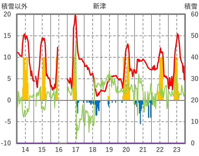 | 日 | 時 | 気温 | 降水 | 風向/風速 | 日照 | 積雪 | 降雪 |