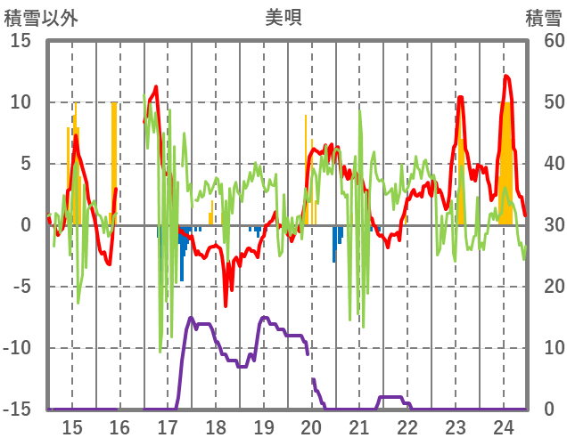 | 日 | 時 | 気温 | 降水 | 風向/風速 | 日照 | 積雪 | 降雪 |