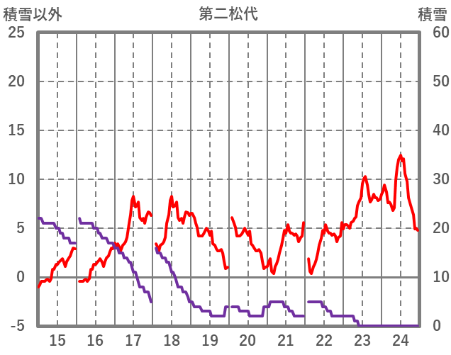 | 日 | 時 | 気温 | 降水 | 風向/風速 | 日照 | 積雪 | 降雪 |