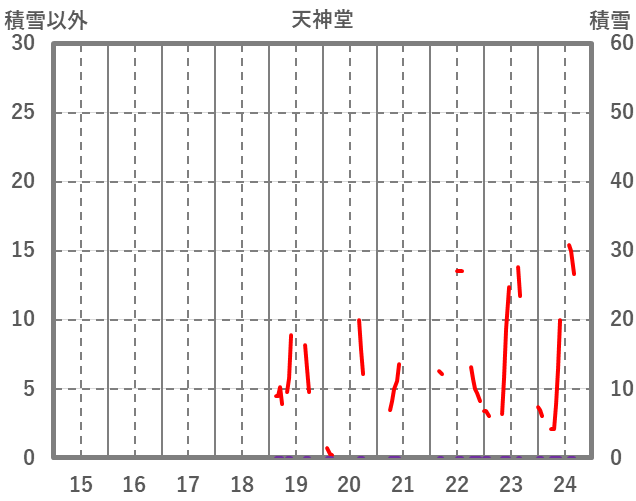 | 日 | 時 | 気温 | 降水 | 風向/風速 | 日照 | 積雪 | 降雪 |