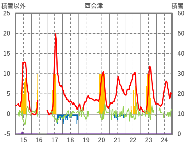 | 日 | 時 | 気温 | 降水 | 風向/風速 | 日照 | 積雪 | 降雪 |