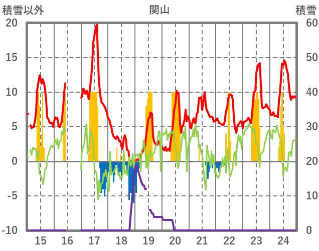 | 日 | 時 | 気温 | 降水 | 風向/風速 | 日照 | 積雪 | 降雪 |