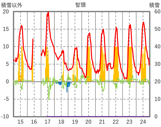 | 日 | 時 | 気温 | 降水 | 風向/風速 | 日照 | 積雪 | 降雪 |