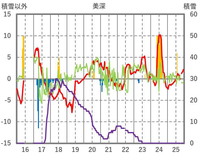| 日 | 時 | 気温 | 降水 | 風向/風速 | 日照 | 積雪 | 降雪 |