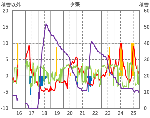 | 日 | 時 | 気温 | 降水 | 風向/風速 | 日照 | 積雪 | 降雪 |