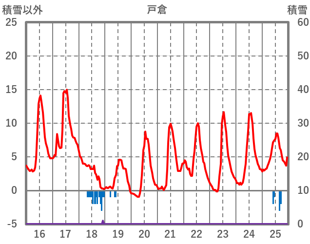 | 日 | 時 | 気温 | 降水 | 風向/風速 | 日照 | 積雪 | 降雪 |