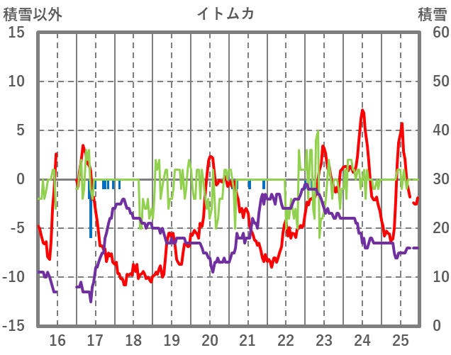 | 日 | 時 | 気温 | 降水 | 風向/風速 | 日照 | 積雪 | 降雪 |