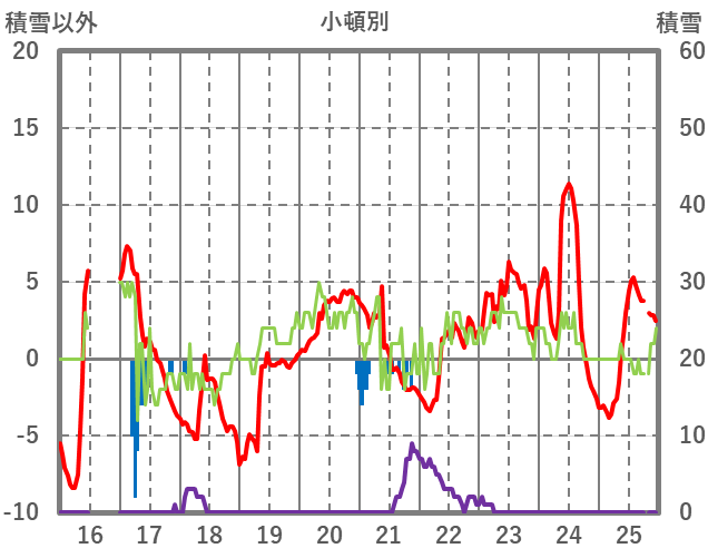 | 日 | 時 | 気温 | 降水 | 風向/風速 | 日照 | 積雪 | 降雪 |