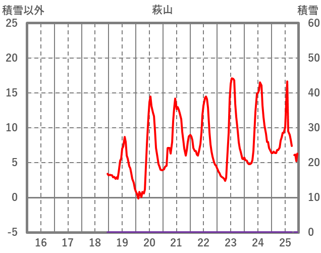 | 日 | 時 | 気温 | 降水 | 風向/風速 | 日照 | 積雪 | 降雪 |