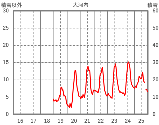 | 日 | 時 | 気温 | 降水 | 風向/風速 | 日照 | 積雪 | 降雪 |