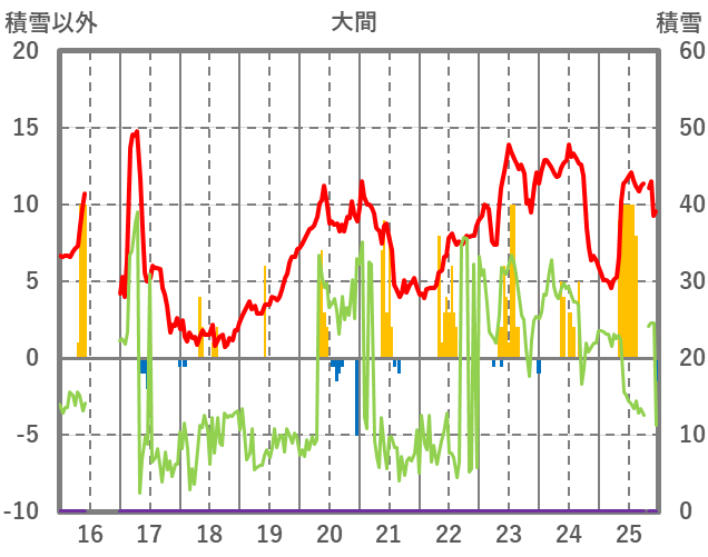 | 日 | 時 | 気温 | 降水 | 風向/風速 | 日照 | 積雪 | 降雪 |