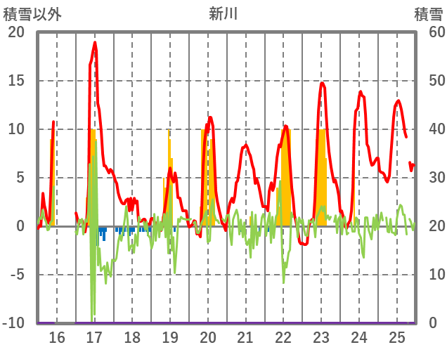 | 日 | 時 | 気温 | 降水 | 風向/風速 | 日照 | 積雪 | 降雪 |
