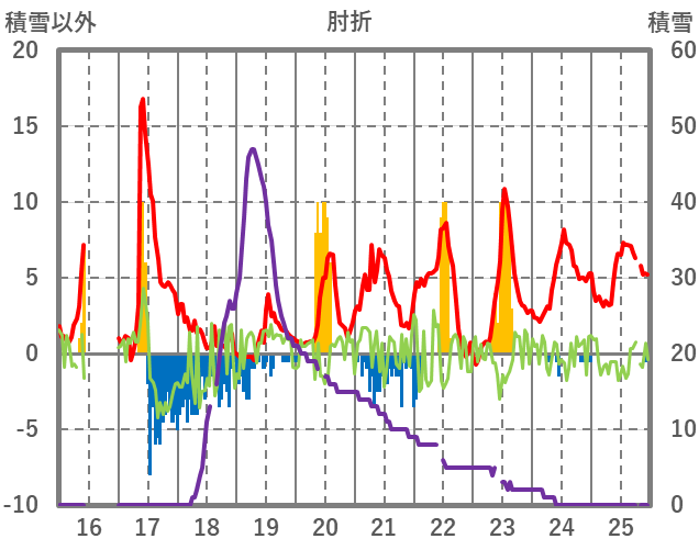 | 日 | 時 | 気温 | 降水 | 風向/風速 | 日照 | 積雪 | 降雪 |