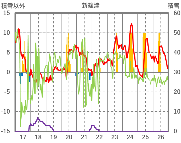 | 日 | 時 | 気温 | 降水 | 風向/風速 | 日照 | 積雪 | 降雪 |