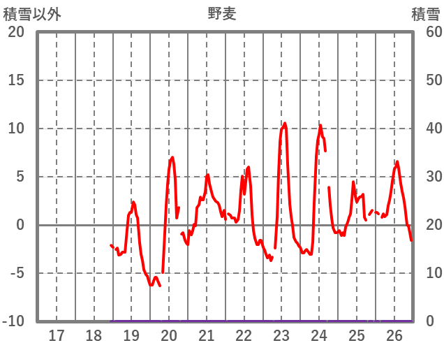 | 日 | 時 | 気温 | 降水 | 風向/風速 | 日照 | 積雪 | 降雪 |