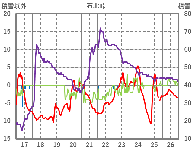 | 日 | 時 | 気温 | 降水 | 風向/風速 | 日照 | 積雪 | 降雪 |