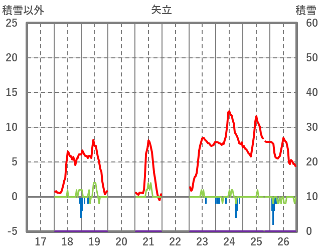| 日 | 時 | 気温 | 降水 | 風向/風速 | 日照 | 積雪 | 降雪 |