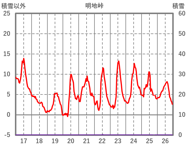 | 日 | 時 | 気温 | 降水 | 風向/風速 | 日照 | 積雪 | 降雪 |