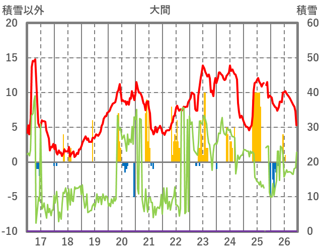 | 日 | 時 | 気温 | 降水 | 風向/風速 | 日照 | 積雪 | 降雪 |