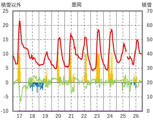 | 日 | 時 | 気温 | 降水 | 風向/風速 | 日照 | 積雪 | 降雪 |