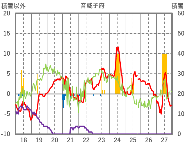| 日 | 時 | 気温 | 降水 | 風向/風速 | 日照 | 積雪 | 降雪 |