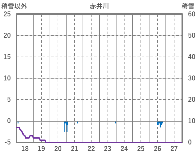 | 日 | 時 | 気温 | 降水 | 風向/風速 | 日照 | 積雪 | 降雪 |