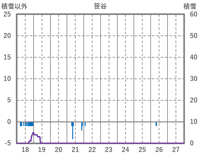 | 日 | 時 | 気温 | 降水 | 風向/風速 | 日照 | 積雪 | 降雪 |