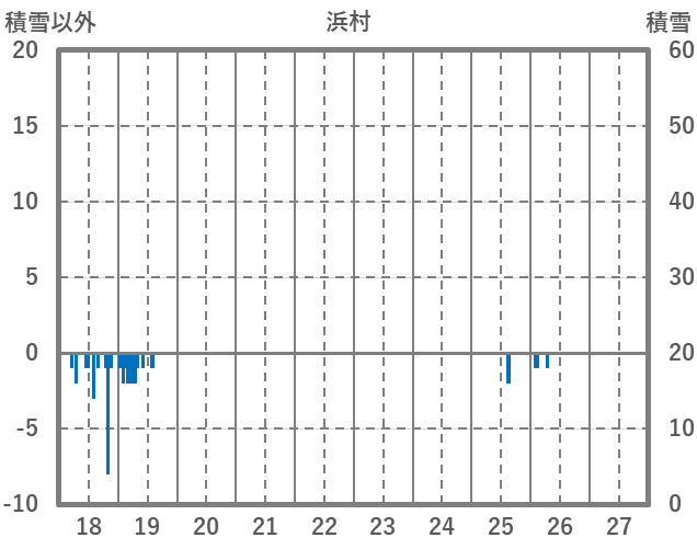 | 日 | 時 | 気温 | 降水 | 風向/風速 | 日照 | 積雪 | 降雪 |