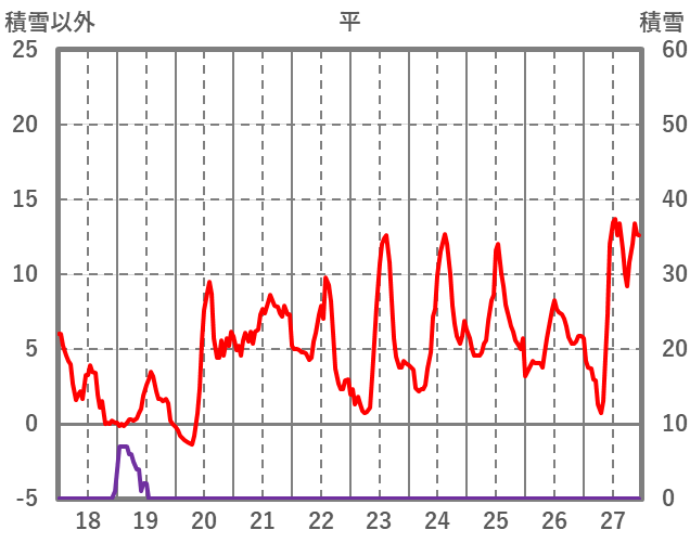 | 日 | 時 | 気温 | 降水 | 風向/風速 | 日照 | 積雪 | 降雪 |