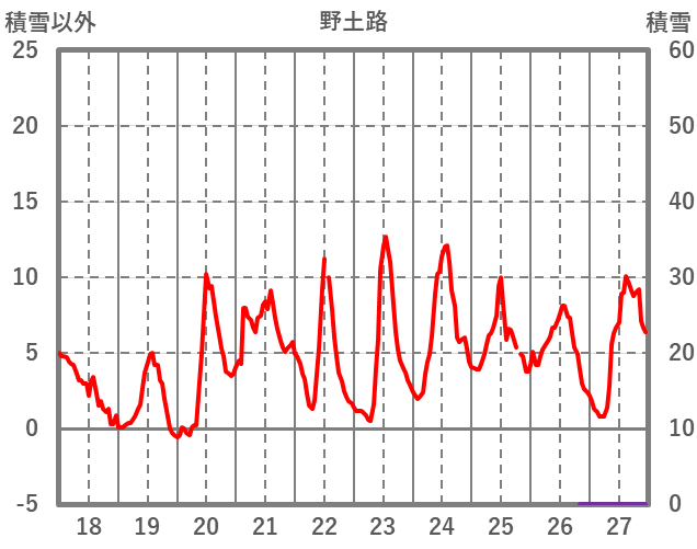 | 日 | 時 | 気温 | 降水 | 風向/風速 | 日照 | 積雪 | 降雪 |