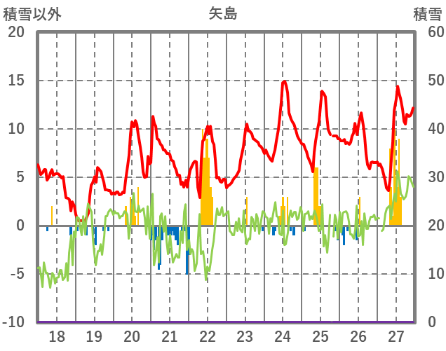 | 日 | 時 | 気温 | 降水 | 風向/風速 | 日照 | 積雪 | 降雪 |