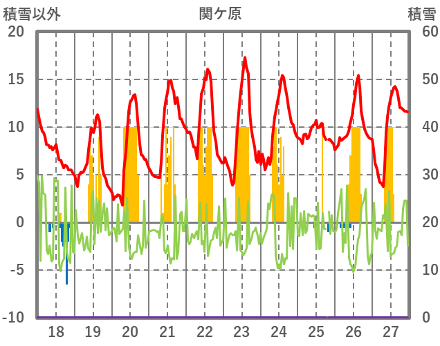 | 日 | 時 | 気温 | 降水 | 風向/風速 | 日照 | 積雪 | 降雪 |