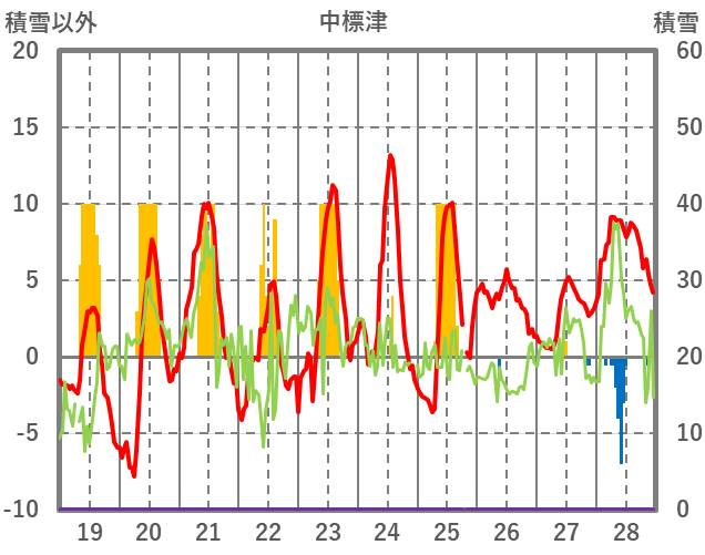 | 日 | 時 | 気温 | 降水 | 風向/風速 | 日照 | 積雪 | 降雪 |