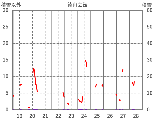 | 日 | 時 | 気温 | 降水 | 風向/風速 | 日照 | 積雪 | 降雪 |