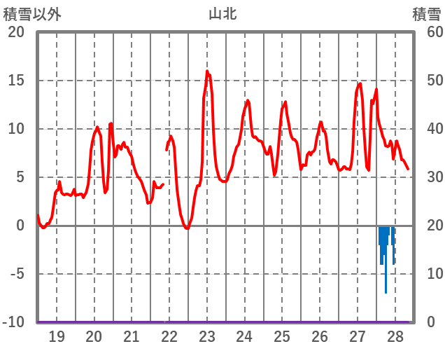 | 日 | 時 | 気温 | 降水 | 風向/風速 | 日照 | 積雪 | 降雪 |