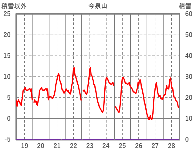 | 日 | 時 | 気温 | 降水 | 風向/風速 | 日照 | 積雪 | 降雪 |