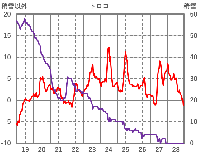| 日 | 時 | 気温 | 降水 | 風向/風速 | 日照 | 積雪 | 降雪 |
