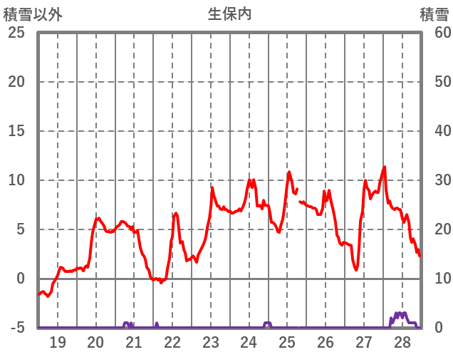 | 日 | 時 | 気温 | 降水 | 風向/風速 | 日照 | 積雪 | 降雪 |