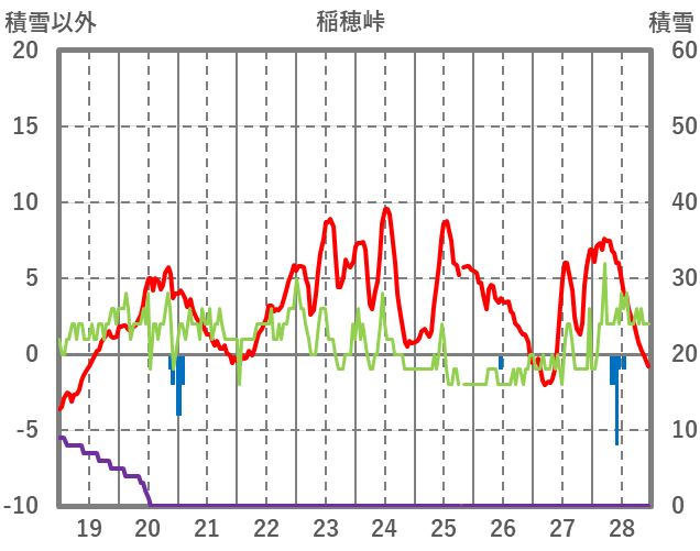 | 日 | 時 | 気温 | 降水 | 風向/風速 | 日照 | 積雪 | 降雪 |