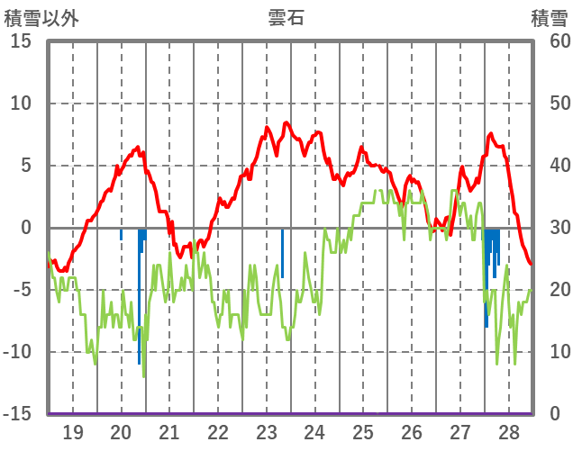 | 日 | 時 | 気温 | 降水 | 風向/風速 | 日照 | 積雪 | 降雪 |