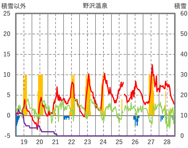 | 日 | 時 | 気温 | 降水 | 風向/風速 | 日照 | 積雪 | 降雪 |