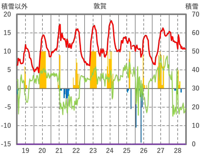 | 日 | 時 | 気温 | 降水 | 風向/風速 | 日照 | 積雪 | 降雪 |