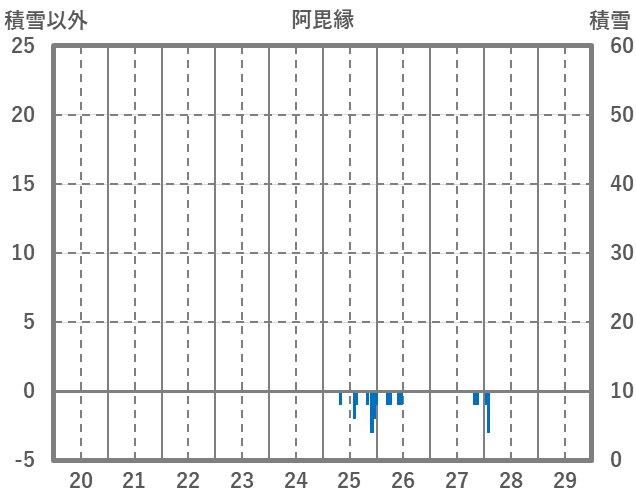 | 日 | 時 | 気温 | 降水 | 風向/風速 | 日照 | 積雪 | 降雪 |