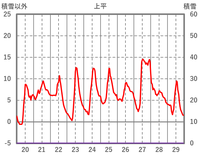| 日 | 時 | 気温 | 降水 | 風向/風速 | 日照 | 積雪 | 降雪 |