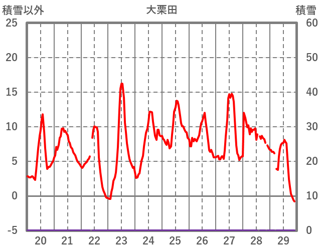 | 日 | 時 | 気温 | 降水 | 風向/風速 | 日照 | 積雪 | 降雪 |