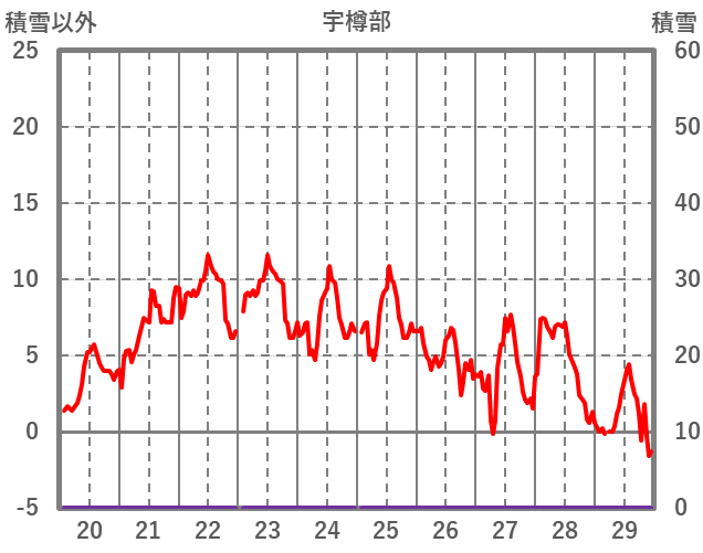 | 日 | 時 | 気温 | 降水 | 風向/風速 | 日照 | 積雪 | 降雪 |