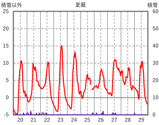 | 日 | 時 | 気温 | 降水 | 風向/風速 | 日照 | 積雪 | 降雪 |